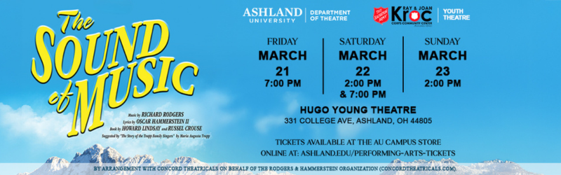 ASHLAND, Ohio – The mid-Ohio community is alive with the sound of music! The Ashland University Theatre Department and The Ashland Kroc Youth Theatre are thrilled to be partnering in their first joint production of the timeless classic, “The Sound of Music” March 21-23 at the Hugo Young Theatre, Ashland University Center for the Arts, 331 College Avenue.