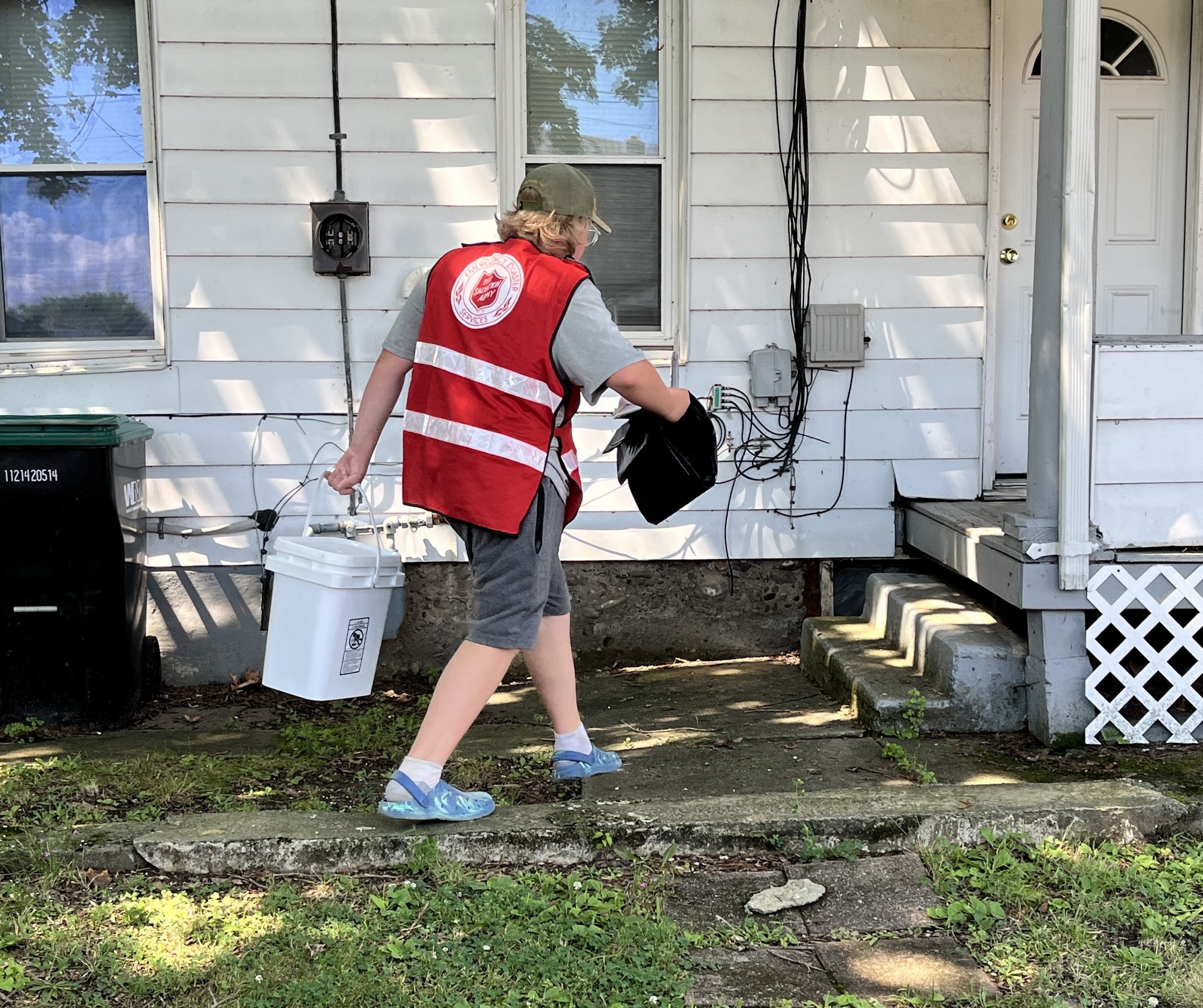 Drawing from his past disaster deployments with The Salvation Army in North Carolina and Vermont, Capt. Buzzard knew how to respond quickly and compassionately. They distributed cleaning kits, packed with mops, gloves, disinfectant, and bleach and helped remove waterlogged furniture.