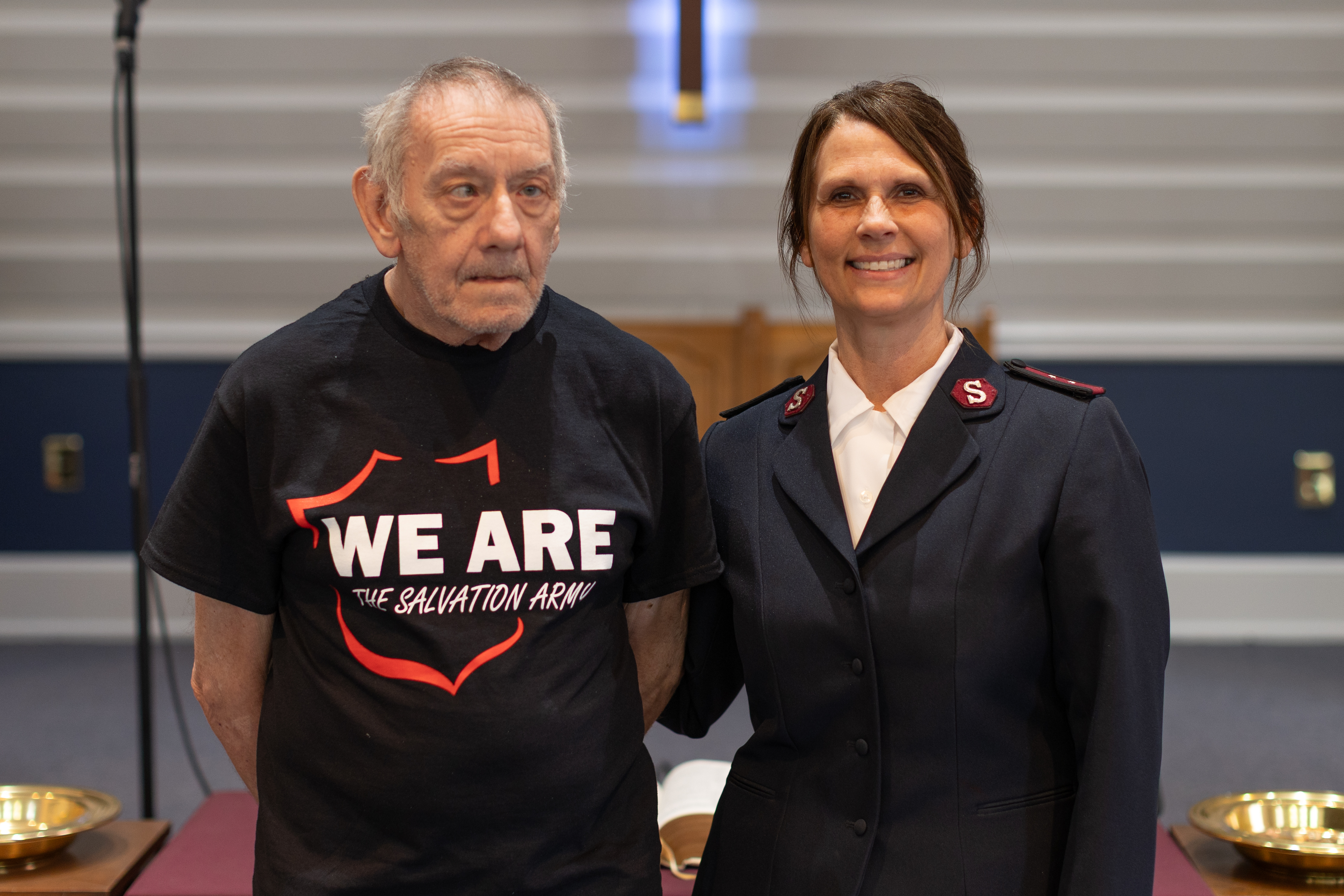 UPLIFTED Captain Rebecca Smith (right), a Salvation Army pastor in Carlisle, Pa., calls George (left) an encouragement to her and her husband, Captain Joseph Smith.