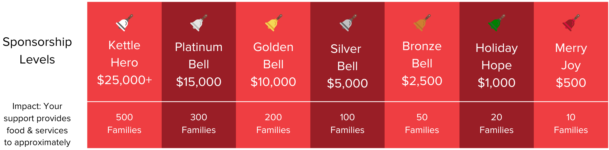 As a Red Kettle Sponsor, your company will be supporting people in need, in the communities of your choice. Here are just a few reasons why sponsoring The Salvation Army Kettle Campaign is a wonderful thing to do: