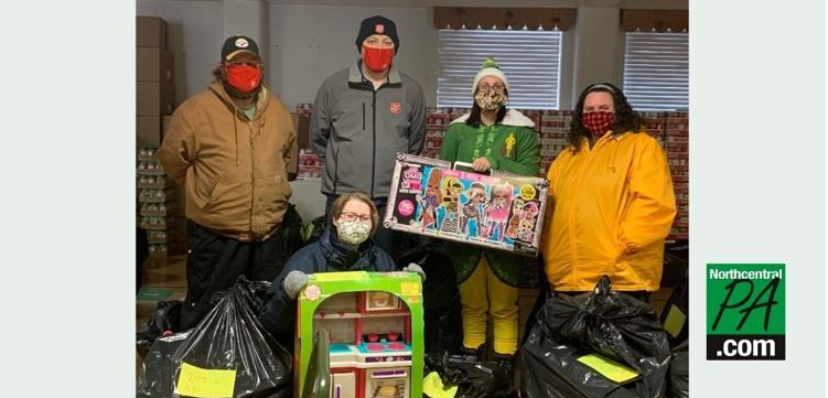 Officers and volunteers of The Salvation Army Lock Haven Corps safely distributed toys to 255 families in need on Dec. 15 and 18 at its headquarters in Lock Haven.