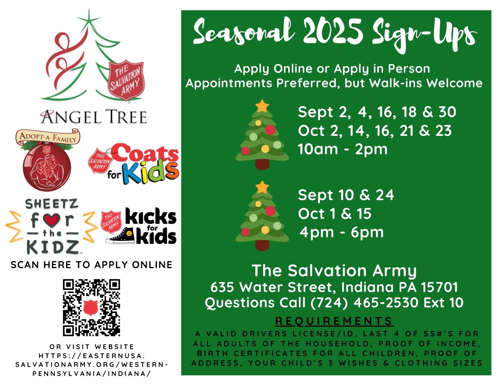 It’s that time of year and we’re super excited! We are now accepting our Seasonal 2025 Applications. Please apply online or call to schedule an in person appointment. Indiana County Residents Only