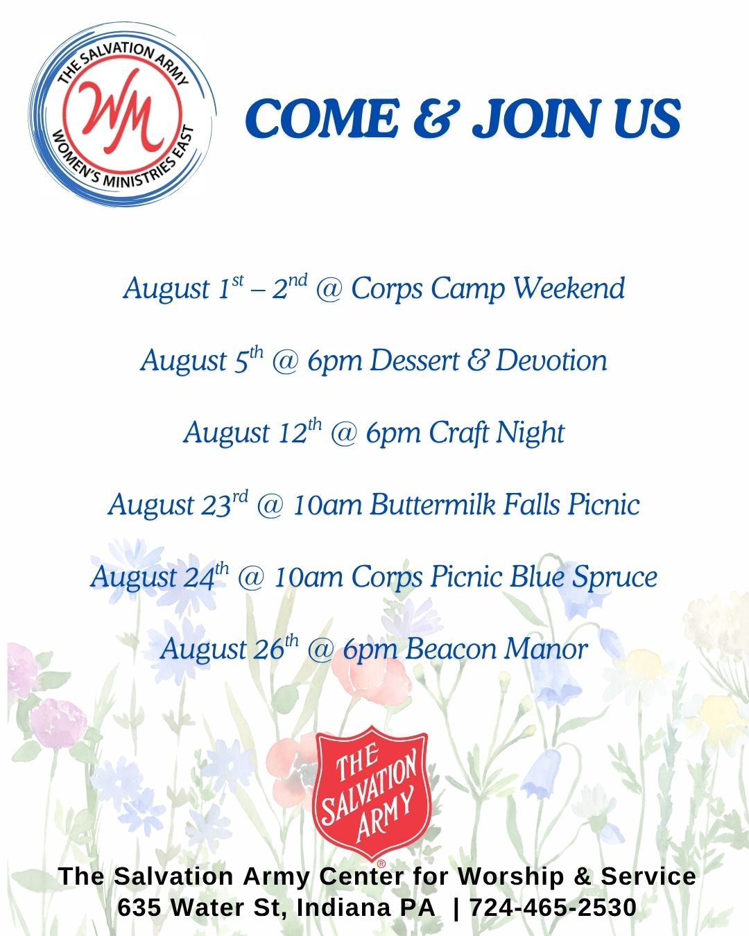 6:00 - 7:30 PM Women’s Fellowship Group All Women are welcome!