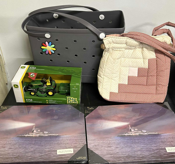 202 - Ida's Gift Shop - Tote Bag, Big Farm Lawn Mower Toy, Lighthouse Pictures X2