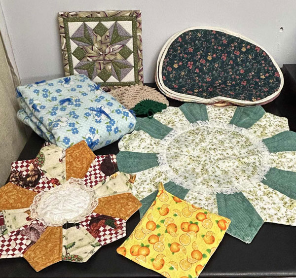 502 - Nancy's Quilt Shop - Blanket, Box, Dollies, 3 Hot Pads, 7 Place Mats