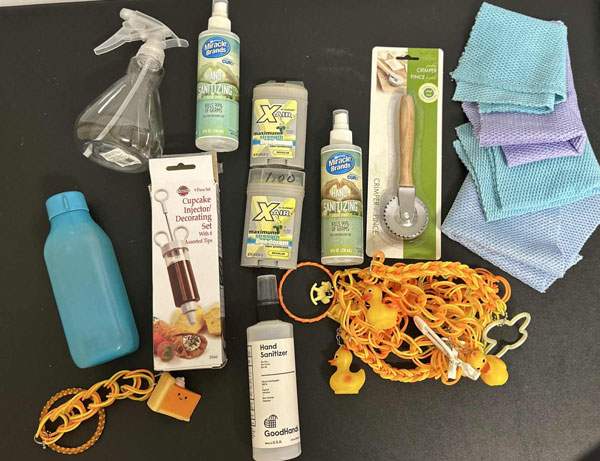 208 - Kurtz Bulk Food - Hygiene items, water bottle, play necklaces, spray bottle, cake decorator